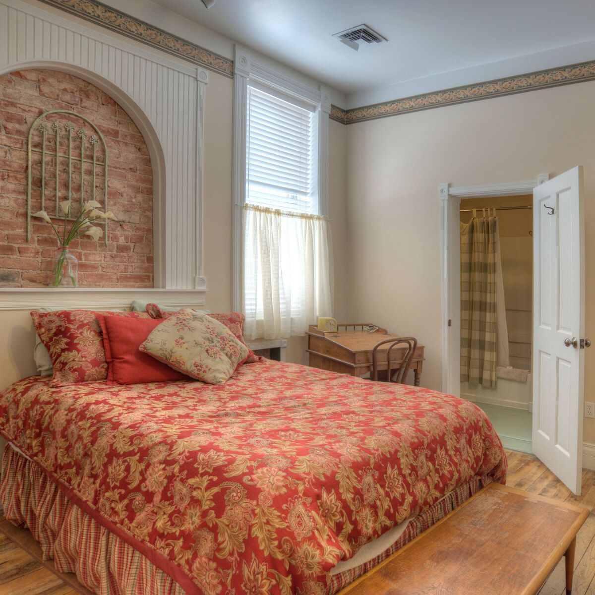 The adjoining bedroom has a queen bed, two twins and an attached bathroom. Like all of our rooms, Everybody provides cable TV and high-speed internet access.
