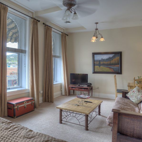 The room with the view. Perfect for the traveling couple or the family looking for something a little different, this mid-sized room overlooks Main Avenue and has a kitchenette ideal for eating in.